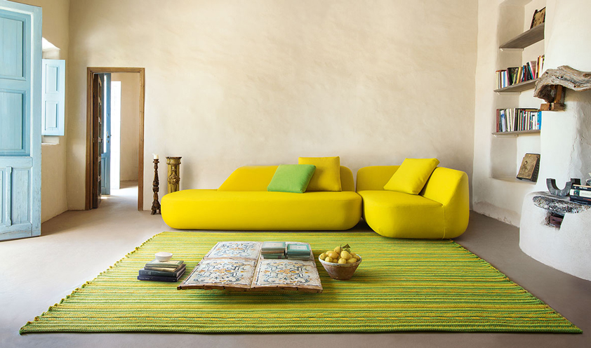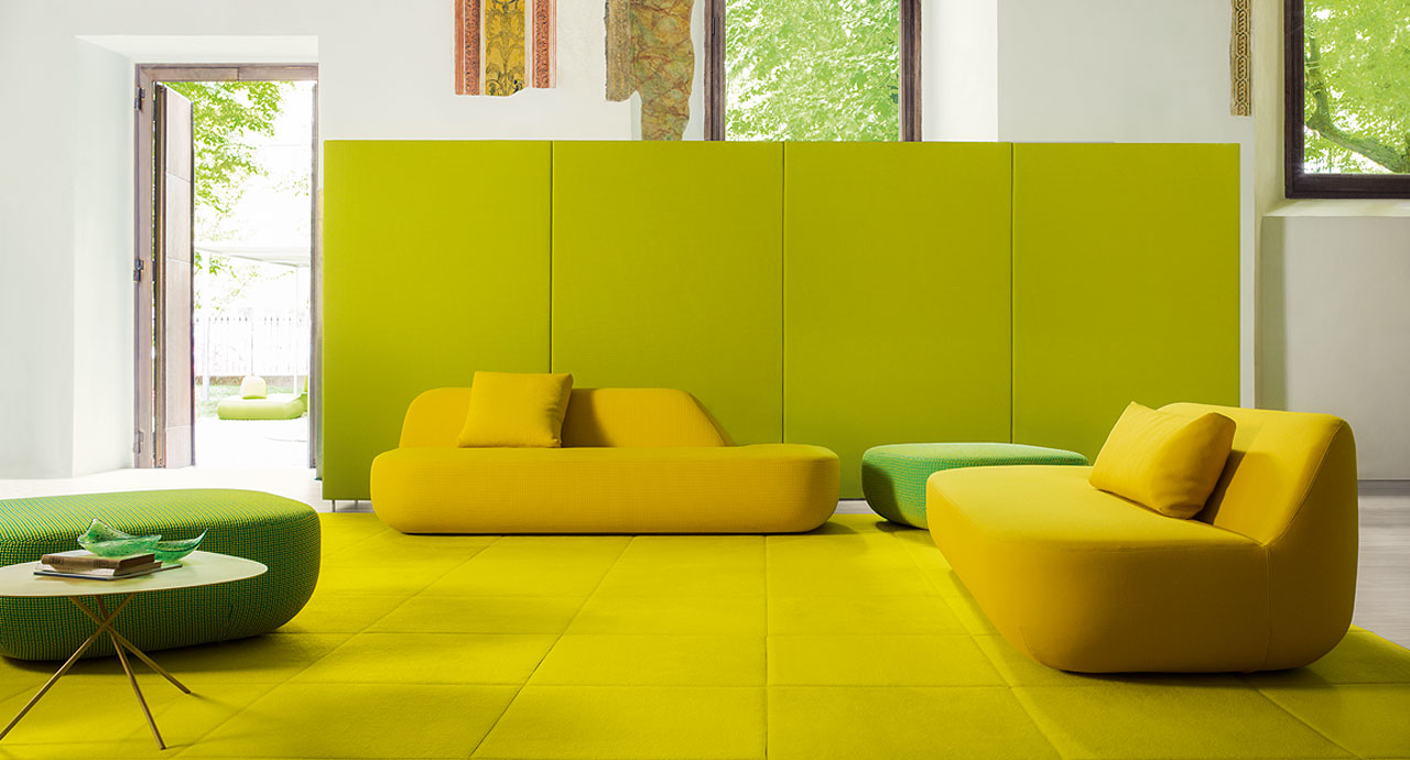 A bold touch of color: the Cassina screen and the Uptown sofa by Paola Lenti