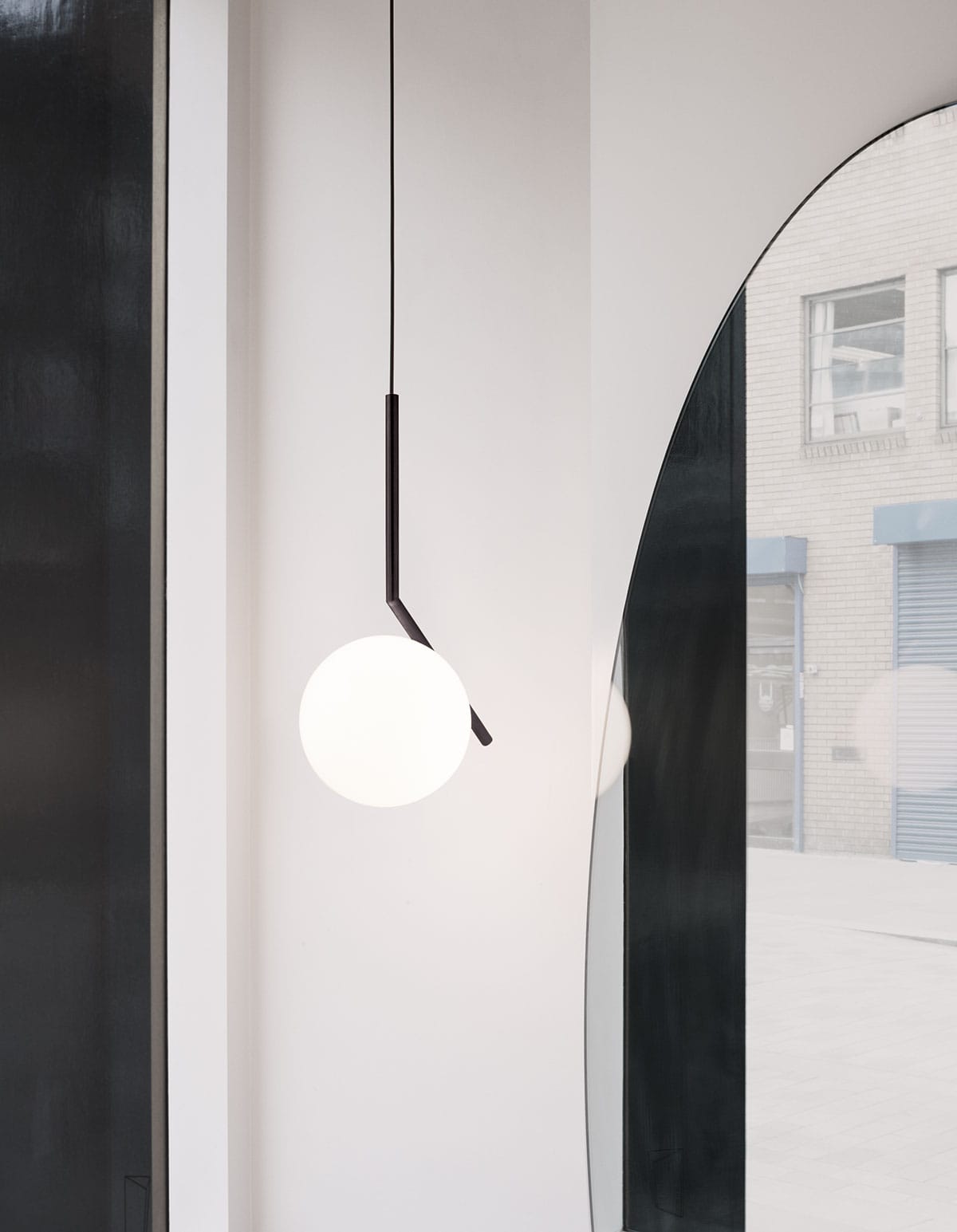The IC is a moon, from which it borrows the delicate and diffused, balanced and decorative lighting. The blown glass sphere seems to float in space and the supporting element in brushed brass is the detail that characterizes it and makes it refined in its essentiality.