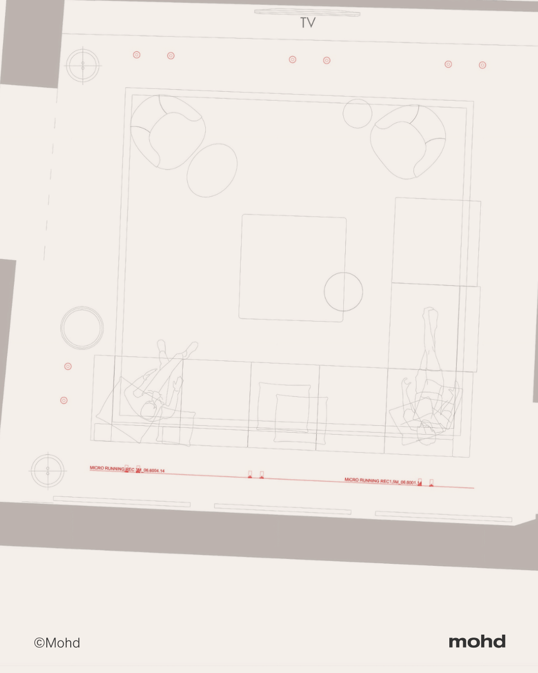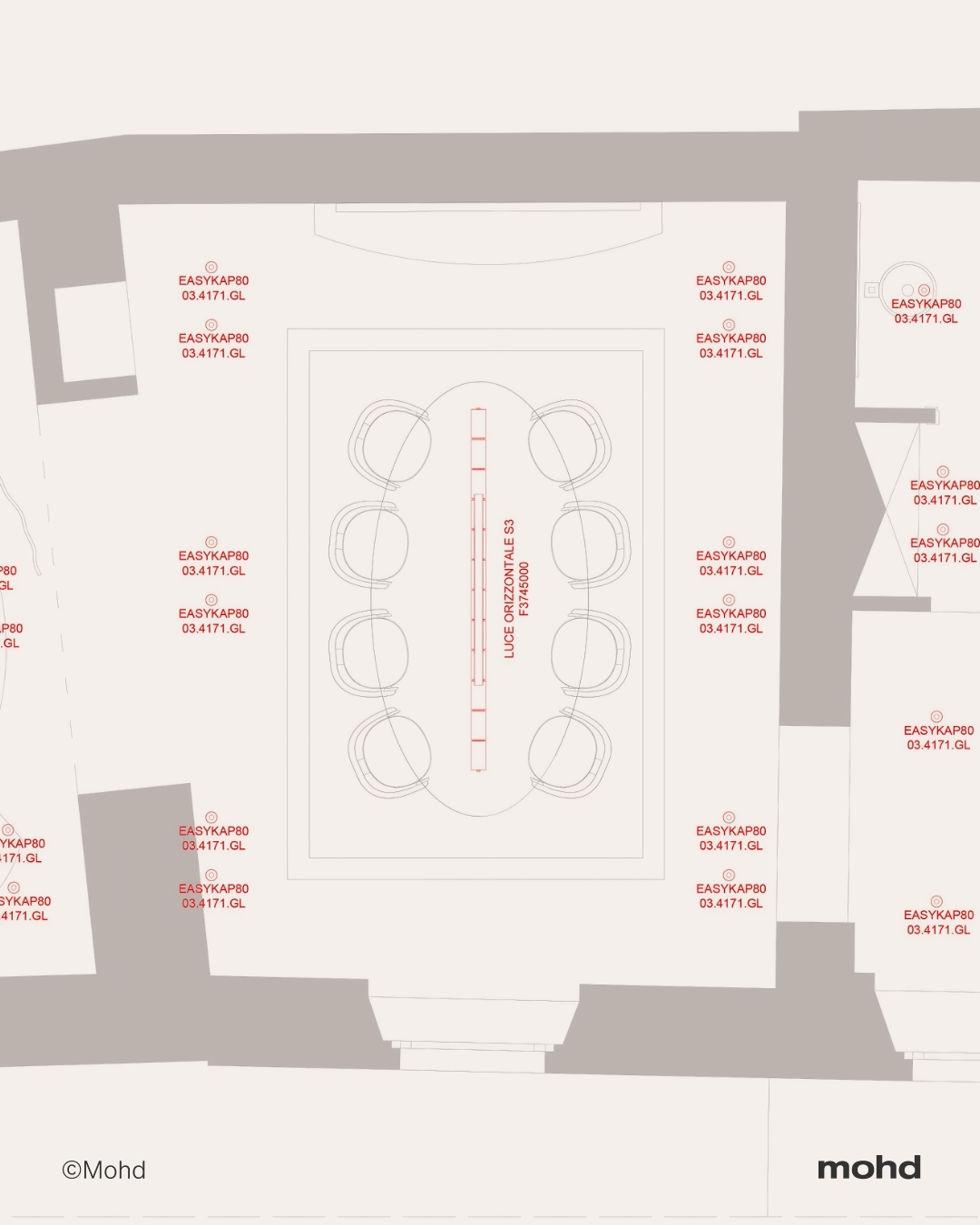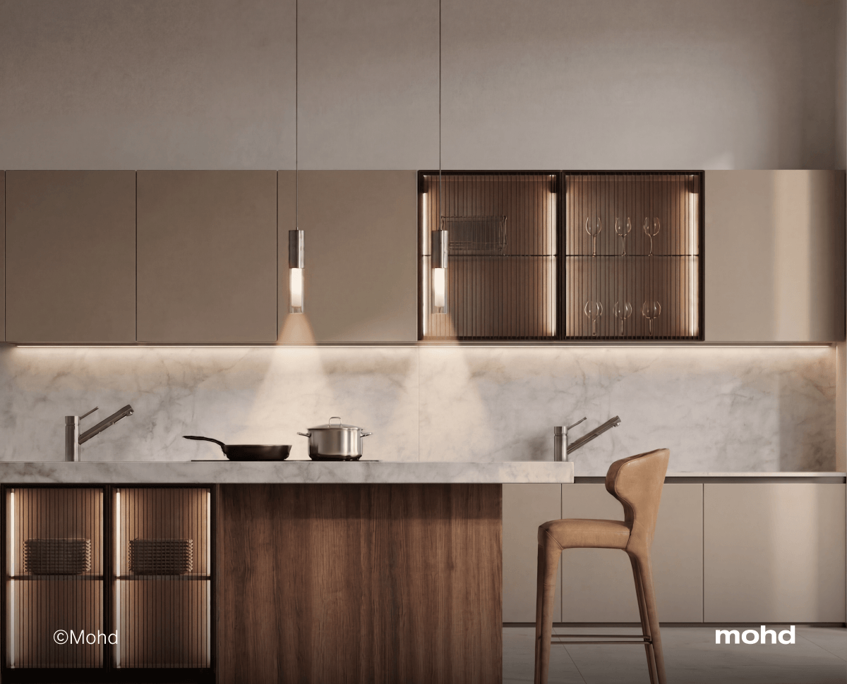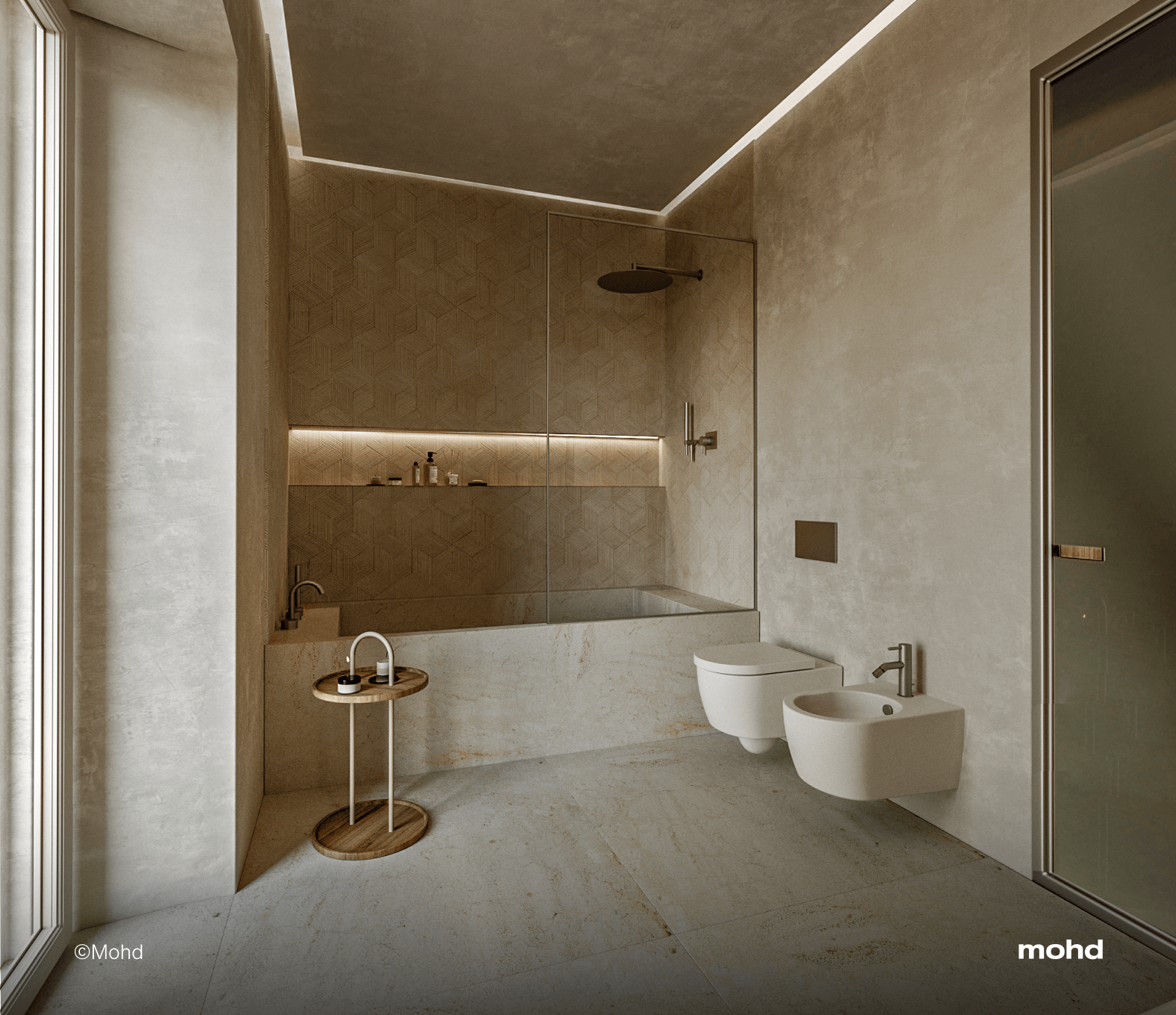 Mohd supports the interior design process through a curated selection and coordination of finishes, flooring, color palettes, and bespoke solutions. From the kitchen to the bathrooms, through to storage systems and the walk-in closet, each choice contributes to building continuity and coherence. Rather than defining a fixed outcome, the project develops a shared design framework capable of accommodating variation while preserving the overall identity of the home.