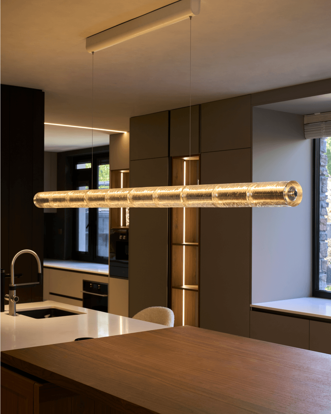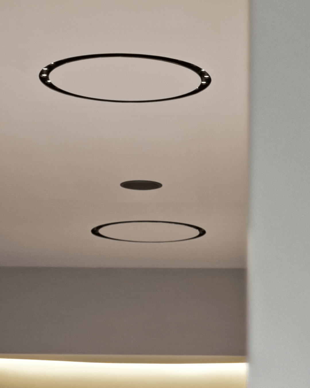 Lighting supports the project through a precise and layered approach, where diffused light, focused accents, and integrated lines shape volumes, transitions, and surfaces.