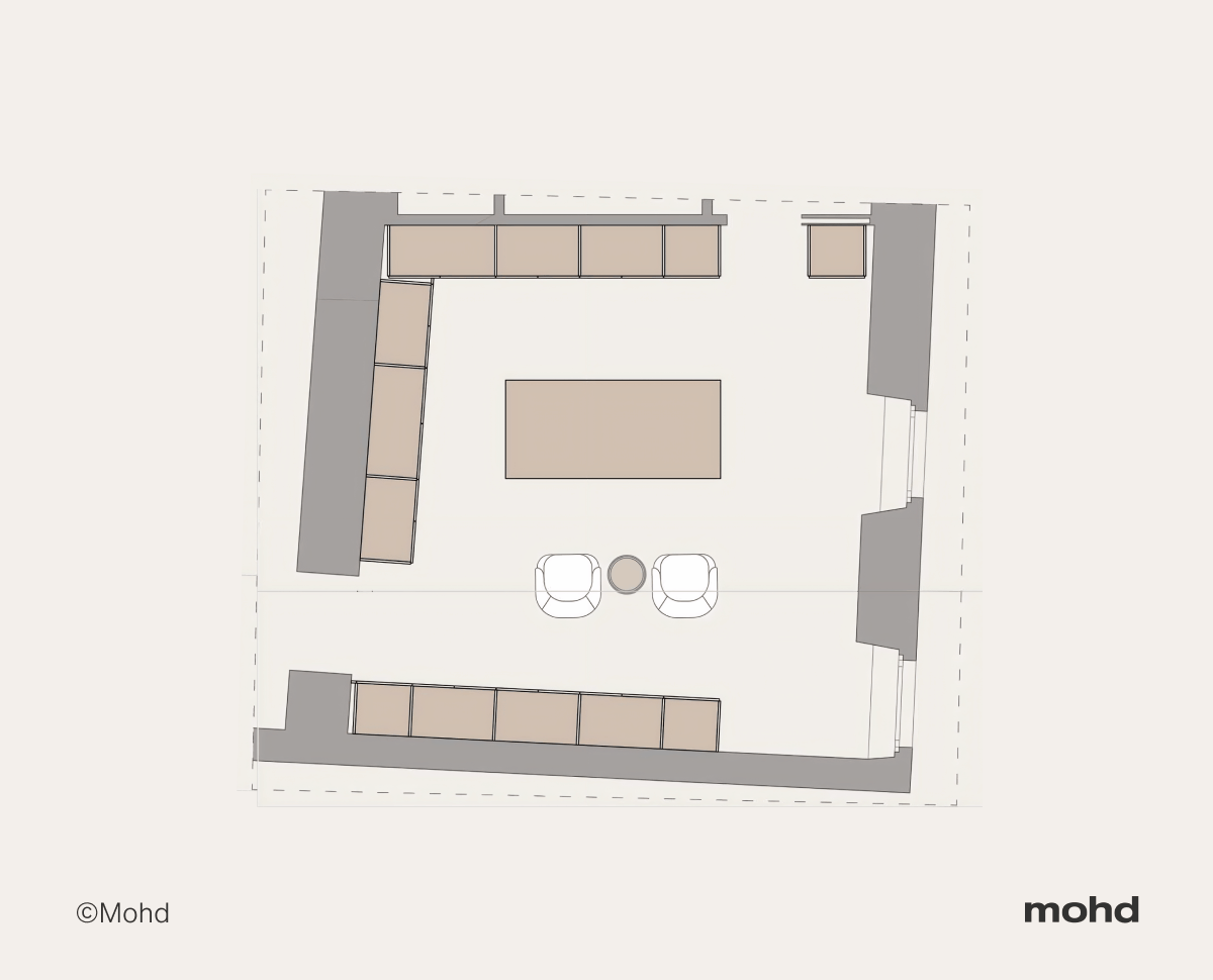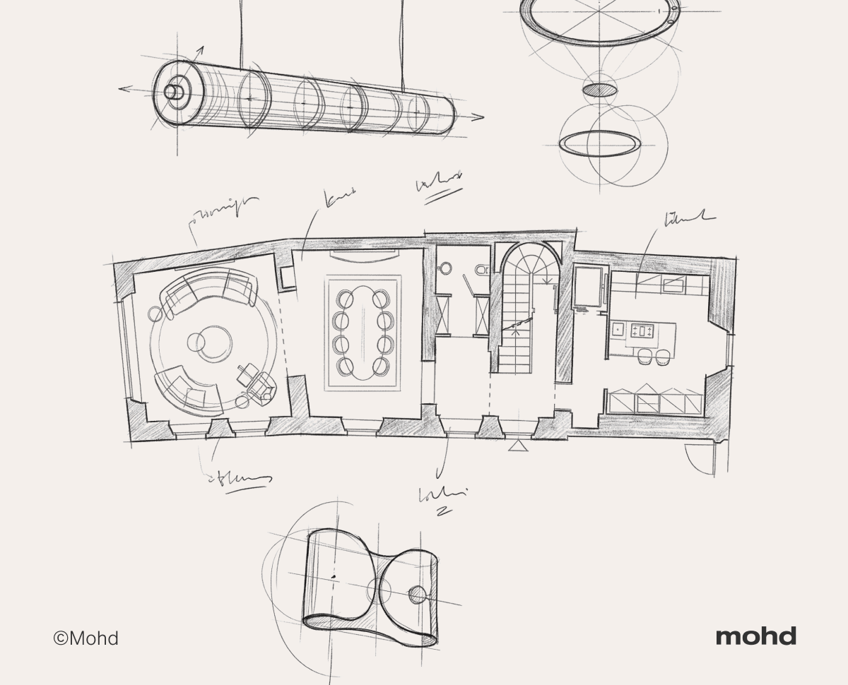 With Mohd as a partner in the interior design process, the project establishes a coherent balance between finishes, flooring, color palettes, bespoke solutions, and spaces still in evolution.