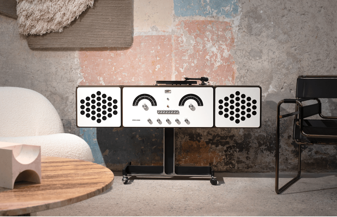A questa linea appartiene anche TS502 Radio.cubo, sintesi immediata di precisione tecnica e intuizione formale, mentre il radiofonografo RR126 dei fratelli Achille e Pier Giacomo Castiglioni porta il discorso su un piano più complesso, trasformando il dispositivo sonoro in un sistema capace di organizzare l’ambiente.