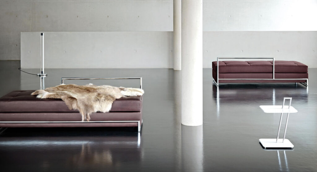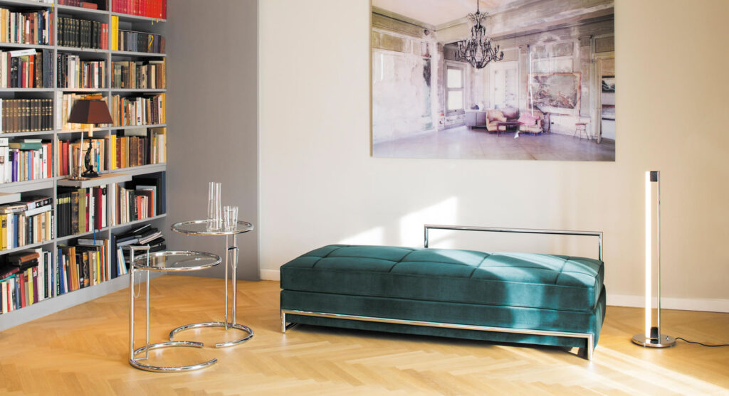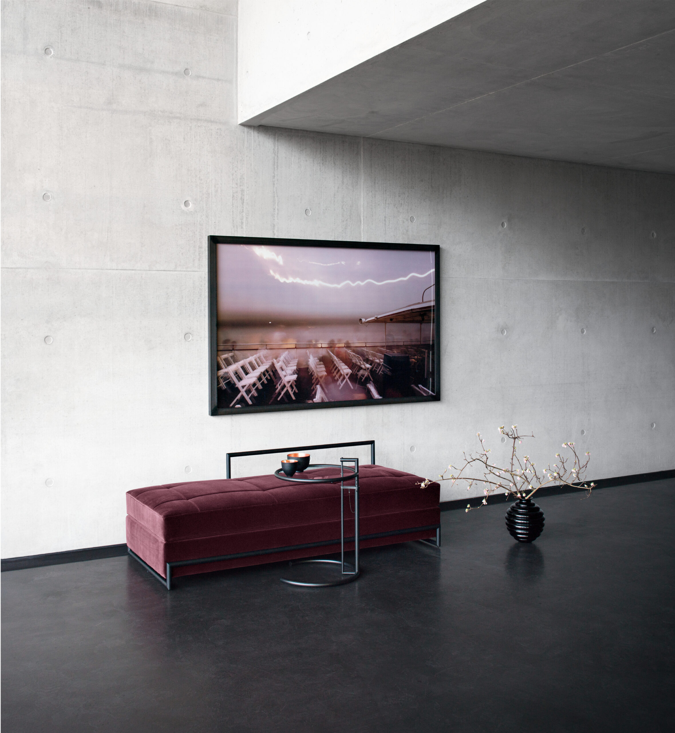 Progettato nel 1925 da Eileen Gray, questo daybed è tanto essenziale quanto elegante. La struttura in acciaio – disponibile anche in nero – è un tratto grafico ridotto al minimo, la componente tessile è generosa nell’imbottitura e raffinata nella selezione di rivestimenti. Le impunture sono il dettaglio che conferisce classe e struttura all’insieme. Adatto alla parete così come al centro stanza, il daybed è accessibile e bello da guardare da tutti i suoi lati.