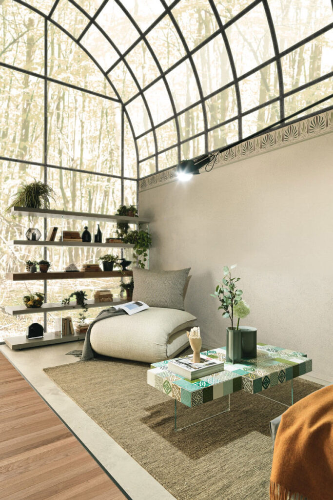 Forme arrotondate e abbinamenti cromatici di tendenza caratterizzano divano e poltrona letto Chama di Lago. Un futon in chiave contemporanea che può diventare chaise longue e anche, togliendo lo schienale, letto per ospiti. Anche in questo caso le procedure di apertura e chiusura sono estremamente agevoli.