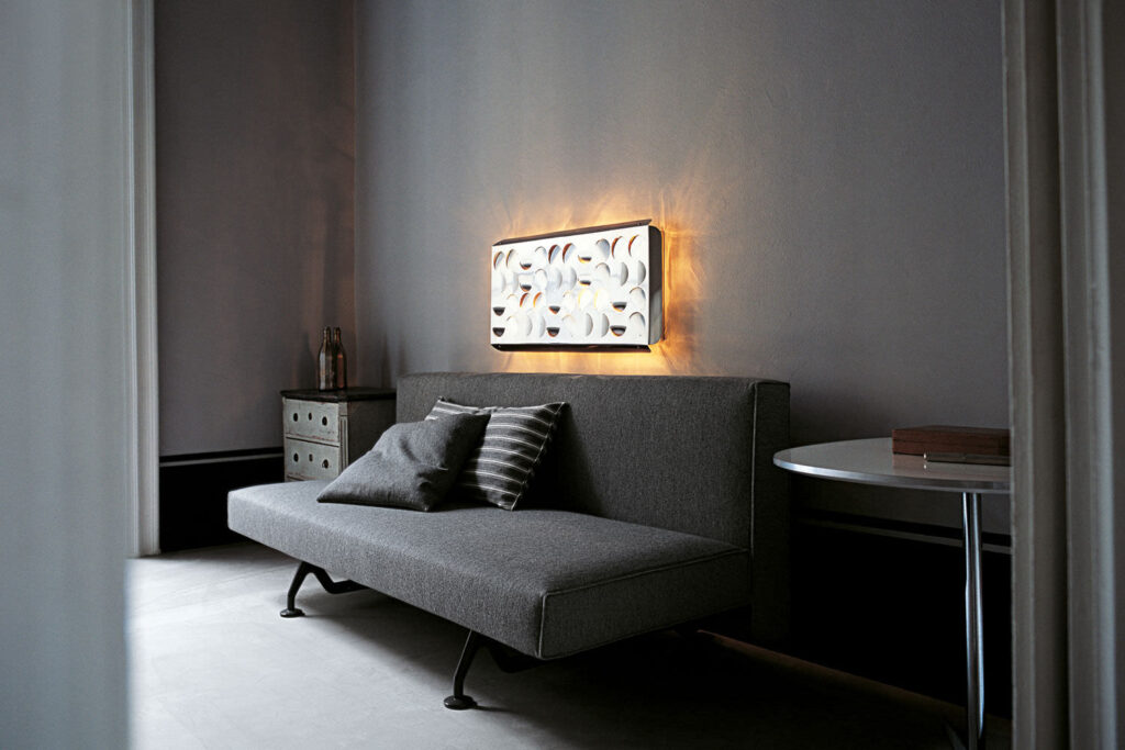 Concludiamo con una vera e propria icona del design italiano: Anfibio di Alessandro Becchi, prodotto da Giovannetti. Disegnato nel 1971 è stato un’importante innovazione nel settore dei divani letto. Lo schienale ruota attorno alla seduta per diventare una morbida cornice di un letto/nido in cui rifugiarsi. Immagine in copertina.