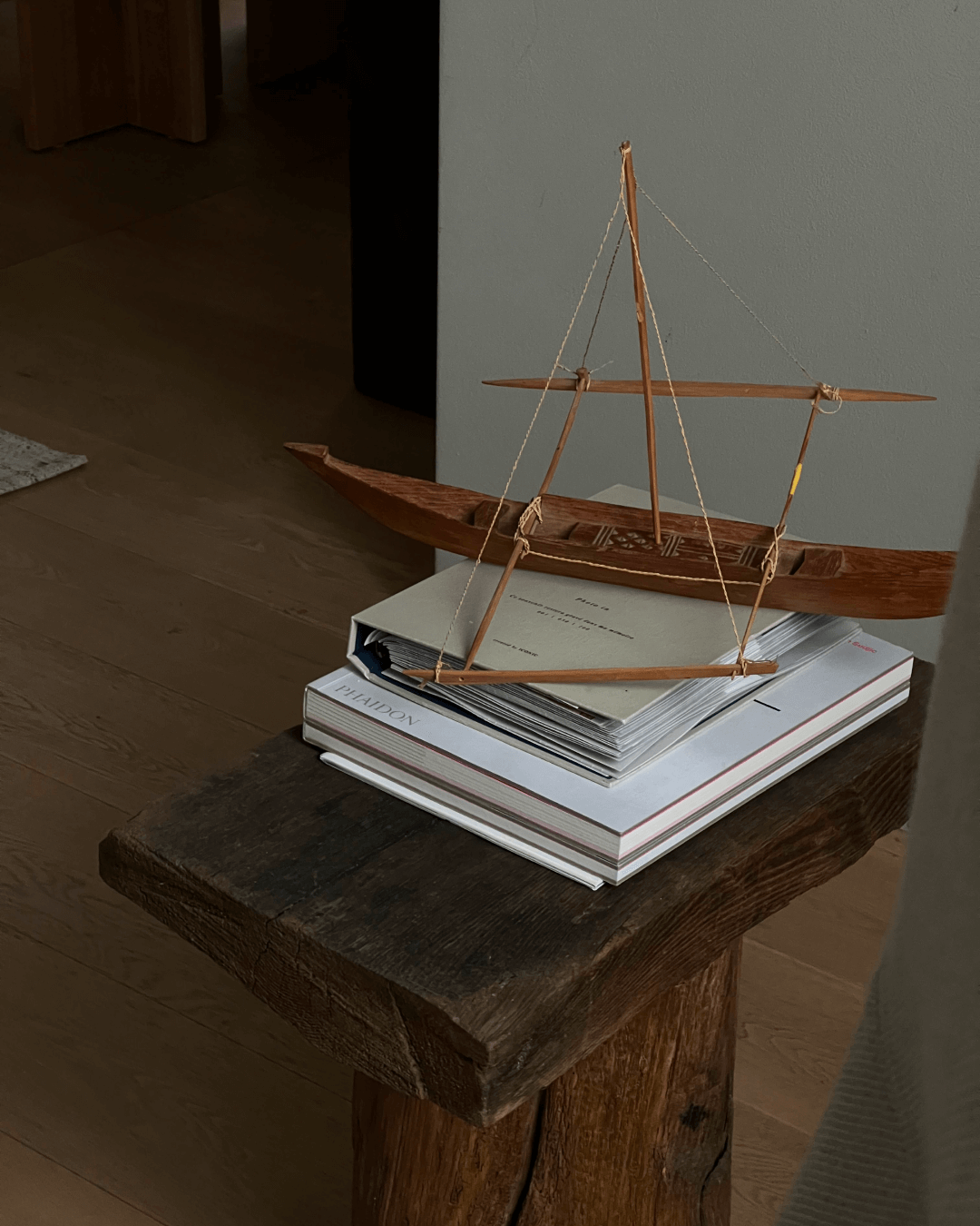 In realtà sento di avere un legame profondo con ogni parte della casa, ma forse l’ingresso occupa un posto speciale. È una sorta di racconto silenzioso di me e del mio compagno, un ritratto discreto delle nostre passioni. È uno spazio essenziale, quasi scarno, ma abitato da pochi oggetti scelti con cura, provenienti da diverse parti del mondo, da noi o da persone a noi vicine, tutti rigorosamente artigianali. Sono proprio loro, con la loro presenza autentica, a stemperare il rigore minimalista che caratterizza il resto della casa.