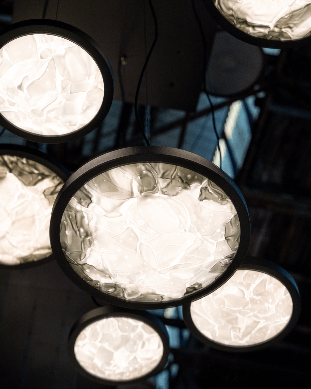 La texture particolare della superfice è data dall’aggiunta di sabbia di silicio al vetro in fase di soffiatura. Ed è una luce dall’effetto del tutto speciale e scenografico.