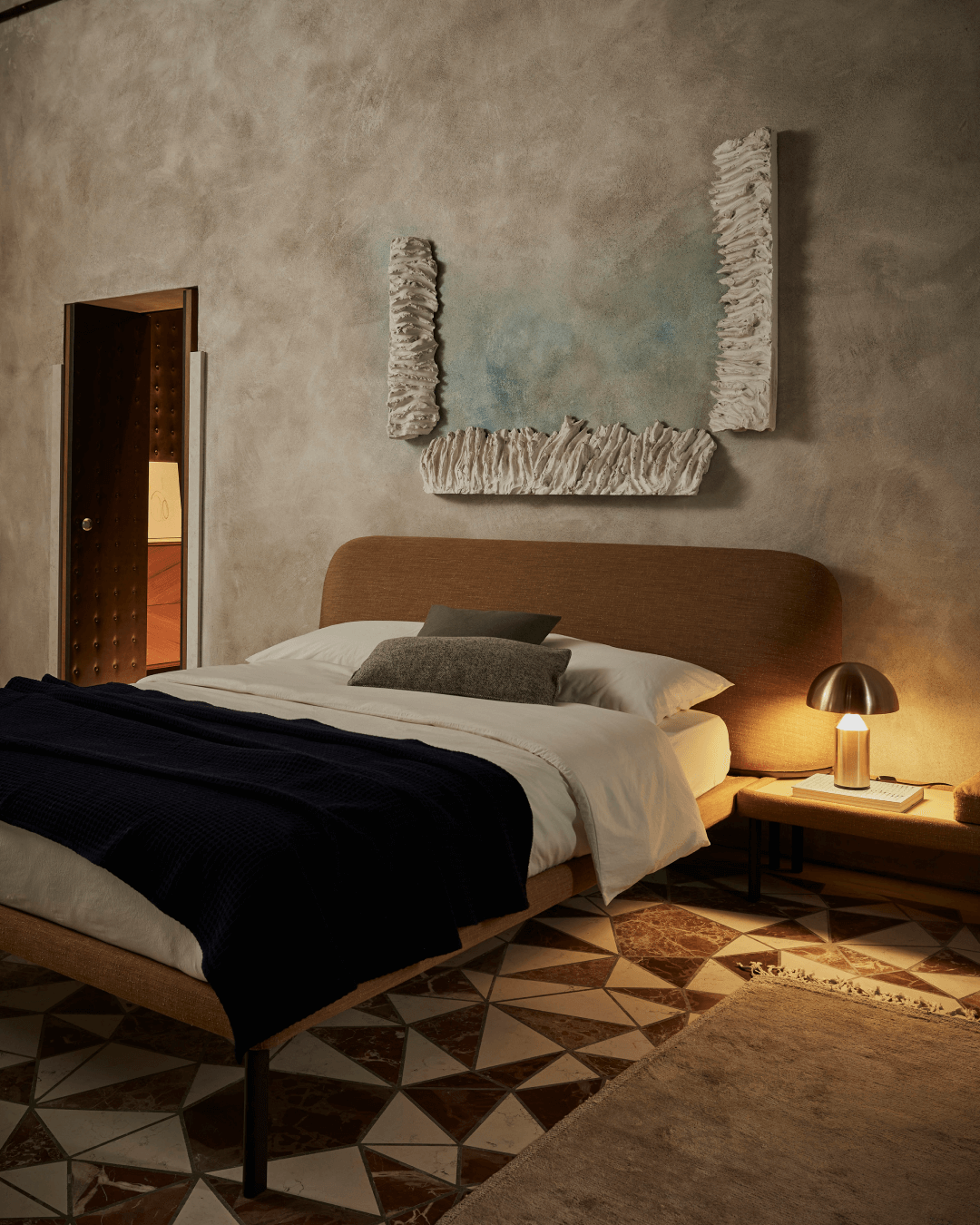 Spostandoci nella zona notte è di Bolzan il letto Marty disegnato da Studio E-ggs: la caratteristica principale è l’ampia e generosa testiera, intenzionalmente ispirata allo schienale di un divano, immaginando il letto non solo come luogo di riposo ma anche angolo relax per leggere o usare comodamente il computer.