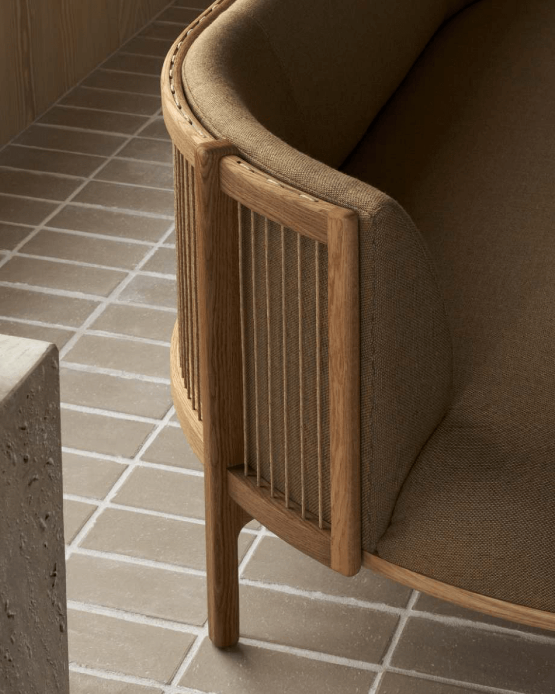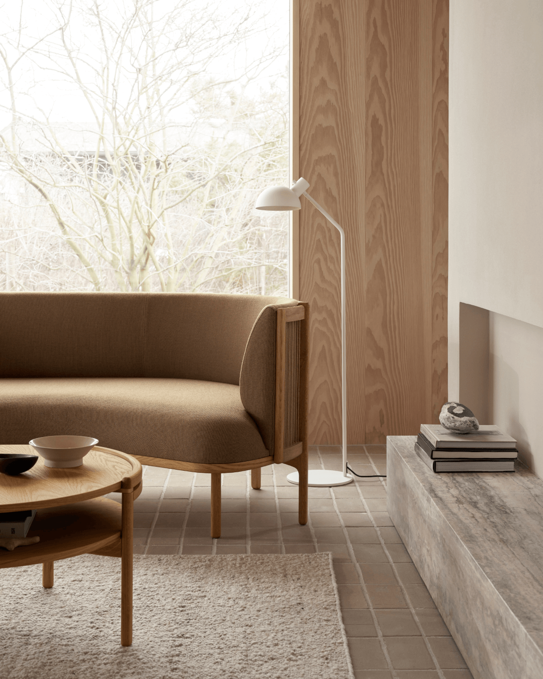 Restando nella zona giorno è molto interessante il divano Sideways, disegnato da Rikke Frost per Carl Hansen & Son. Ha la forma raccolta e alla morbidezza della componente imbottita si abbina la bellezza del legno, sempre grande protagonista nell’arredo danese.