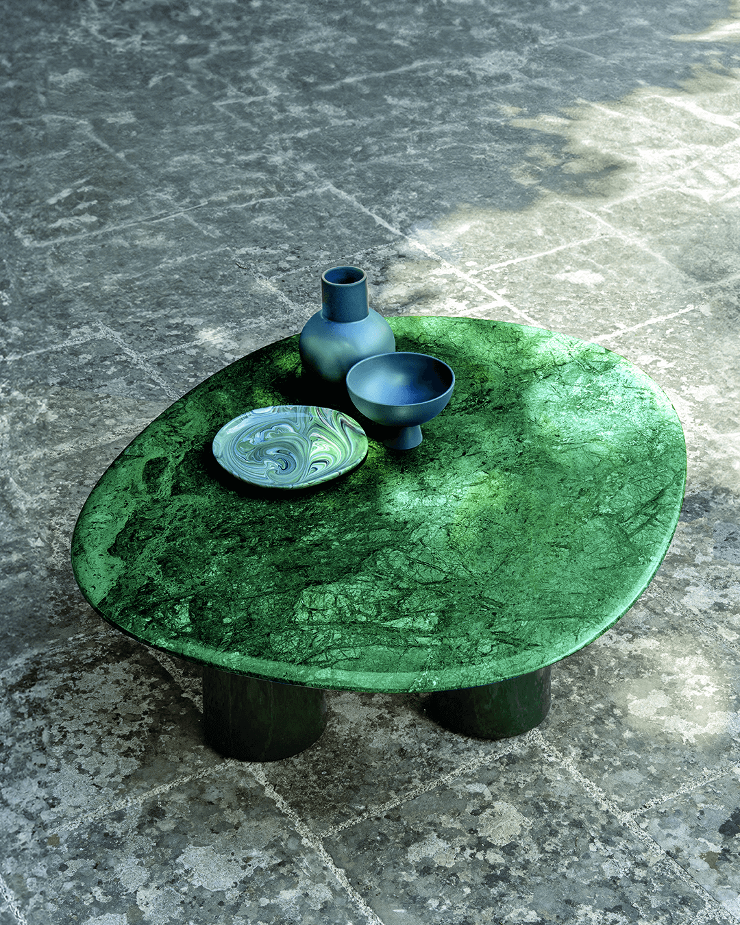 Restando nella categoria outdoor, Ethimo porta a Parigi la collezione di vasi in cemento Innesti di Studiopepe, in cui questo materiale di radice industriale indossa il vestito elegante dello stile delle designer. Sono, invece, in marmo, i tavolini Boldini, della stessa azienda caratterizzati da forme organiche e consistenze generose.
