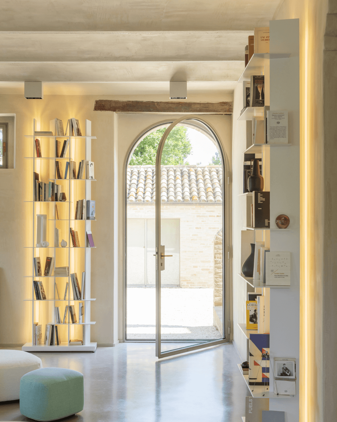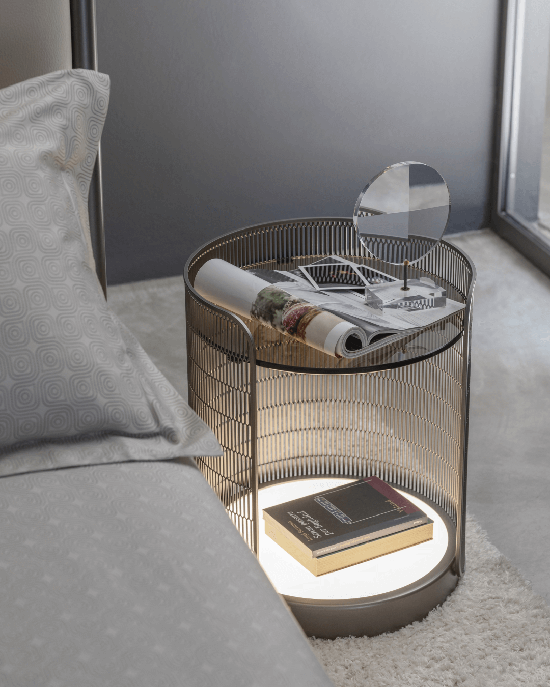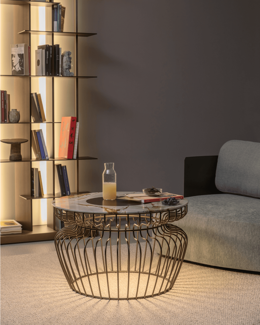 La luce è protagonista assoluta nelle collezioni di Natevo, dalla spettacolare libreria CCLight di Carlo Colombo al tavolino Chiaro di Luna di Ilenia Viscardi che firma anche, per l’esterno, tavolo e tavolino Atollo.