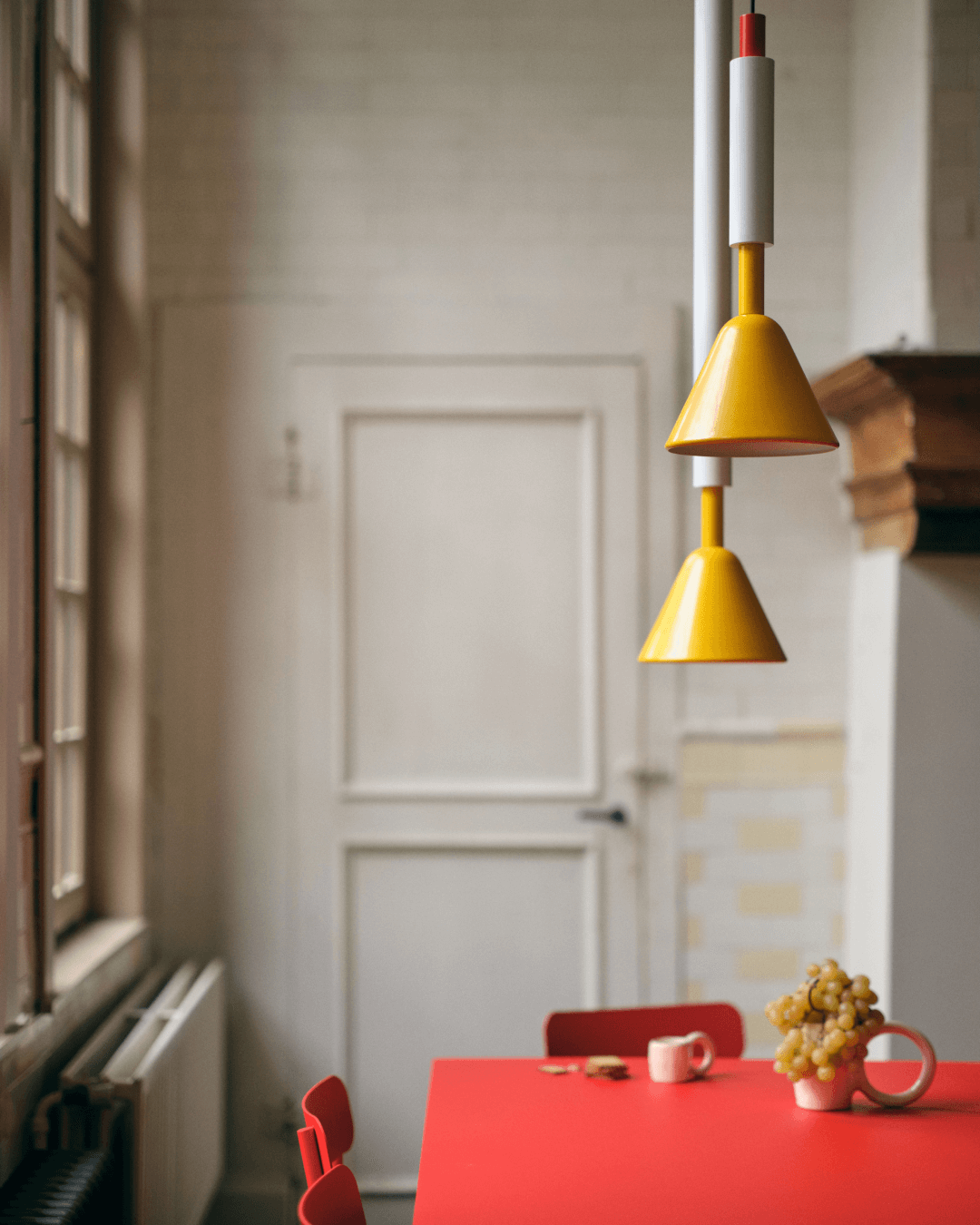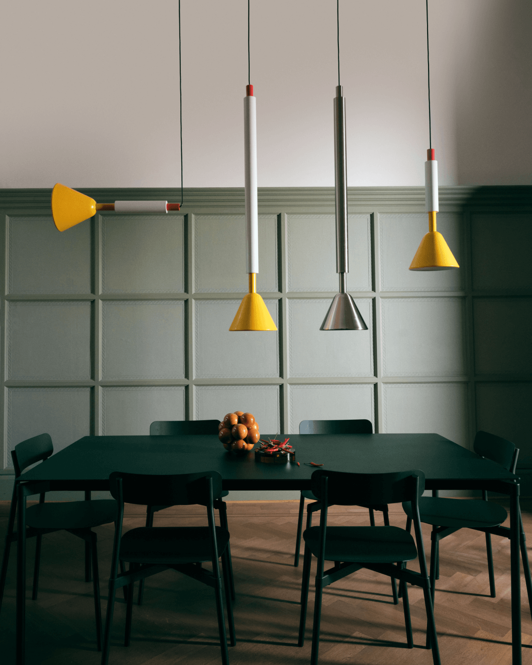 Il colore è determinante anche nella nuova collezione di lampade PYL di Marie Cornil and Alexandre Willaume per Petite Friture, azienda che ricerca e valorizza l’unicità progettuale. Presentata nelle versioni da terra, sospesa e da parete, questa lampada in acciaio si sviluppa attraverso blocchi di colore decisi e consistenti, tra stile industriale e giocoso.