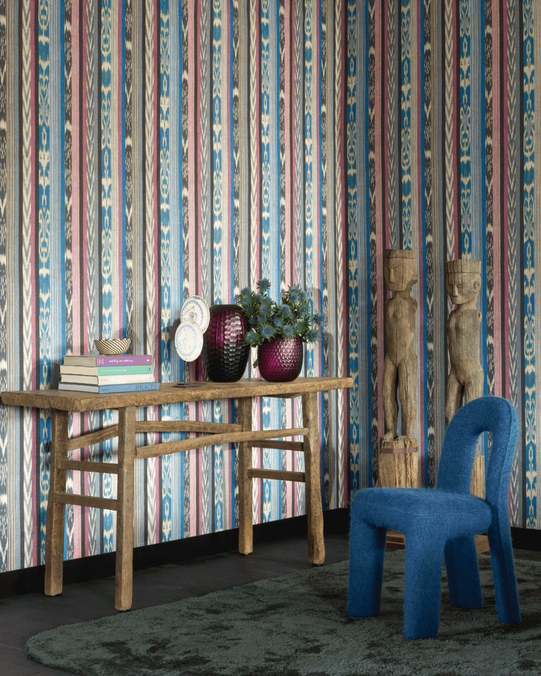 Palette cromatiche libere, forme organiche e sperimentazioni spregiudicate si accompagnano alla consueta eleganza nelle nuove collezioni delle aziende francesi, grandi protagoniste dell’evento. Pierre Frey, nel suo allestimento ospitato al Hôtel de Guise, veste le sue iconiche collezioni di arredi con tessuti nuovi come Thalassa e Chroma, serie di tinte unite in collaborazione con India Mahdavi. Sullo sfondo, le nuove carte da parato Parallèle e Deserts e la nuova collezione di tappeti Fantasy i cui colori e motivi grafici sono una dichiarazione d’amore nei confronti dello stile ’50-’70.