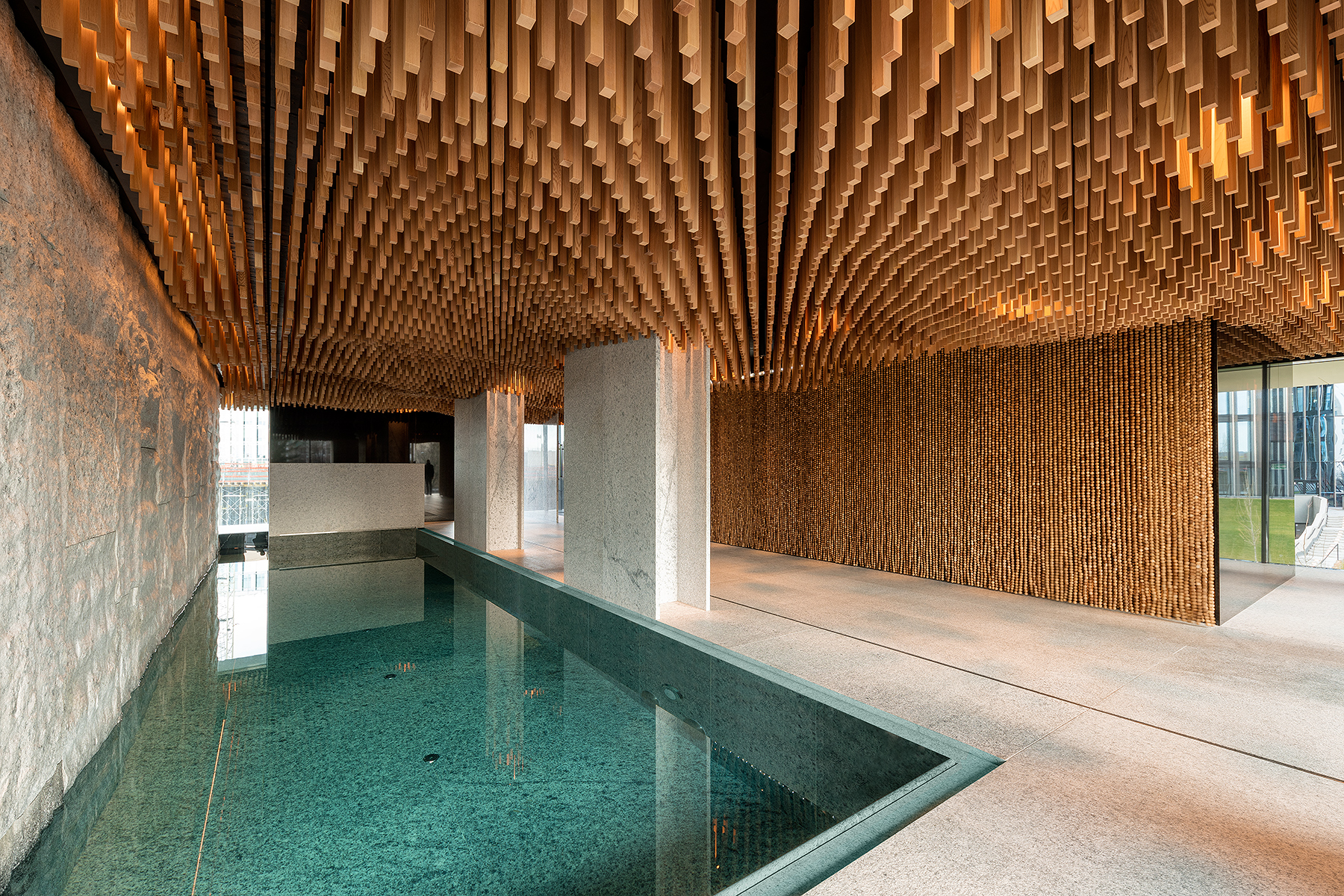 L’audace architettura a V dell’edificio permette di occupare meno spazio alla base, destinata agli usi commerciali, per poi diramarsi nelle due braccia della “V” e offrire ai residenti un’ineguagliabile vista sullo skyline di Praga. L’avanguardista progetto è dell’architetto Radan Hubička e aspira a ricevere la certificazione LEED Platinum, grazie anche all’utilizzo di una serie di innovazioni e tecniche incentrate su salute, comfort e sostenibilità.