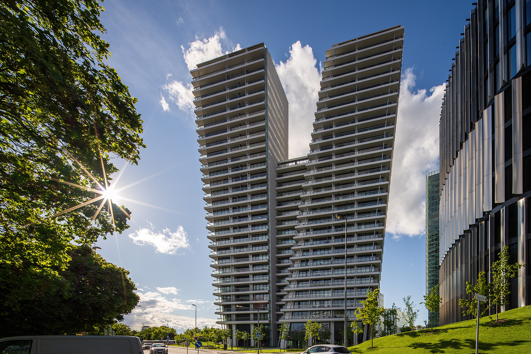 Inaugurato nel 2018, il V Tower di Praga è l’edificio residenziale più alto della città: la sua torre di 104 metri si sviluppa su 30 piani. Domina i quartieri Hradčany (il quartiere del castello), Vyšehrad e Vinohrady e sorge sul fiume Moldava, è circondata da grandi parchi e spazi verdi diventando un punto di riferimento della città.