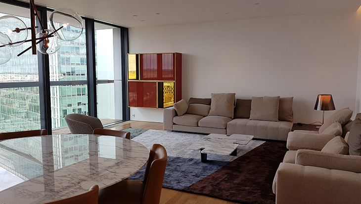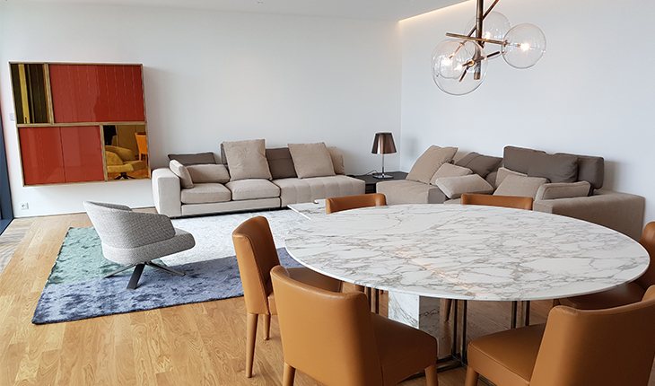 La commissione degli interni dell’appartamento al 20° piano arriva da una cliente di Mohd che, incuriosita dalla grande selezione dei brand proposti, decide di visitare lo showroom e conoscere tutta la squadra. Aveva, infatti, già in mente di affidarle il compito di arredare il suo nuovo appartamento di Praga.